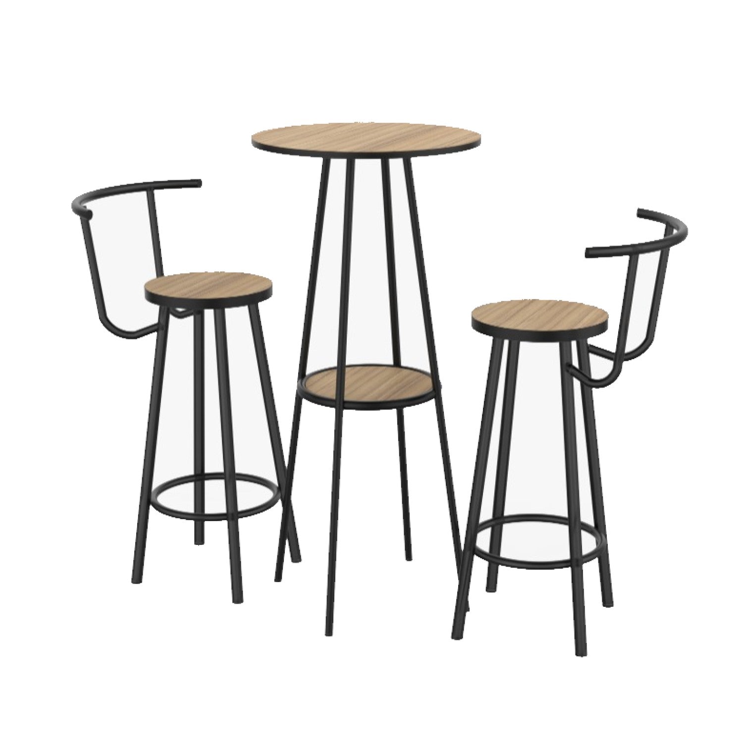 Mesa de bar de fierro Negro y madera ideal para terrazas o restaurantes, estilo moderno e ideal para decorar los ambientes. Patas de metal altamente resistente.
