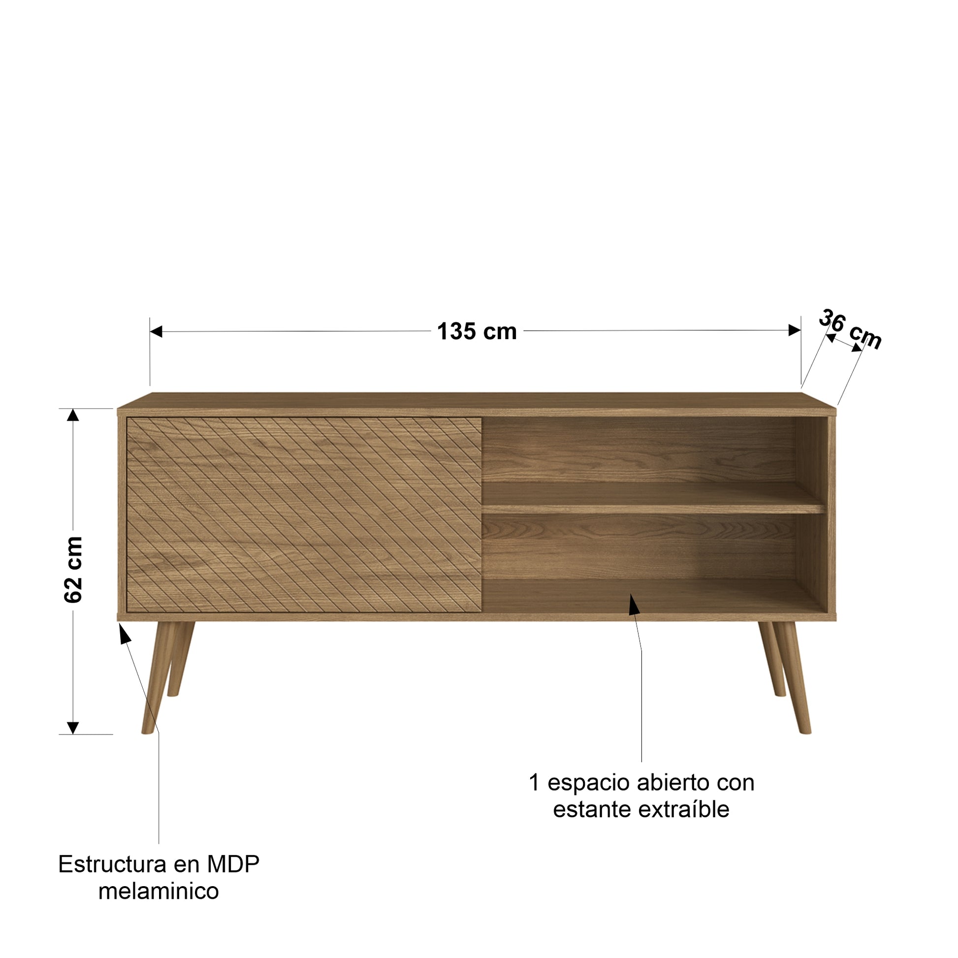 Este Rack es ideal para instalarlo en tu sala de estar, sala de estar o incluso en tu dormitorio, es un rack ideal para todo tipo de espacio, además de ser un elemento indispensable para acomodar y organizar dispositivos tecnológicos que hay siempre en el hogar, ya sea el televisor, los decodificadores, consolas de juego, o parlantes, etc.. es por eso que nuestro rack cuenta con divisiones para aportar
