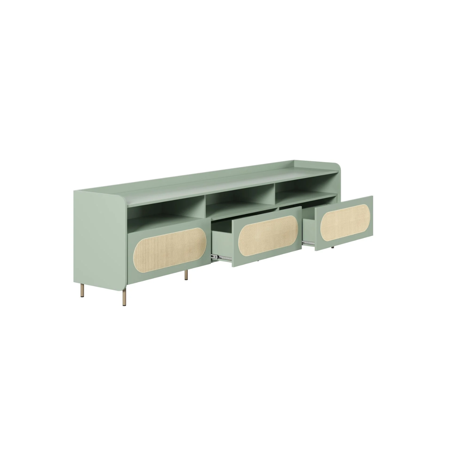 Diseño minimalista con líneas curvas y acabado mate, puertas que aportan calidez y textura. Sus tres compartimentos y estante superior te ofrecen espacio de sobra para libros, plantas y objetos decorativos. Organiza con estilo y añade un toque fresco a tu living