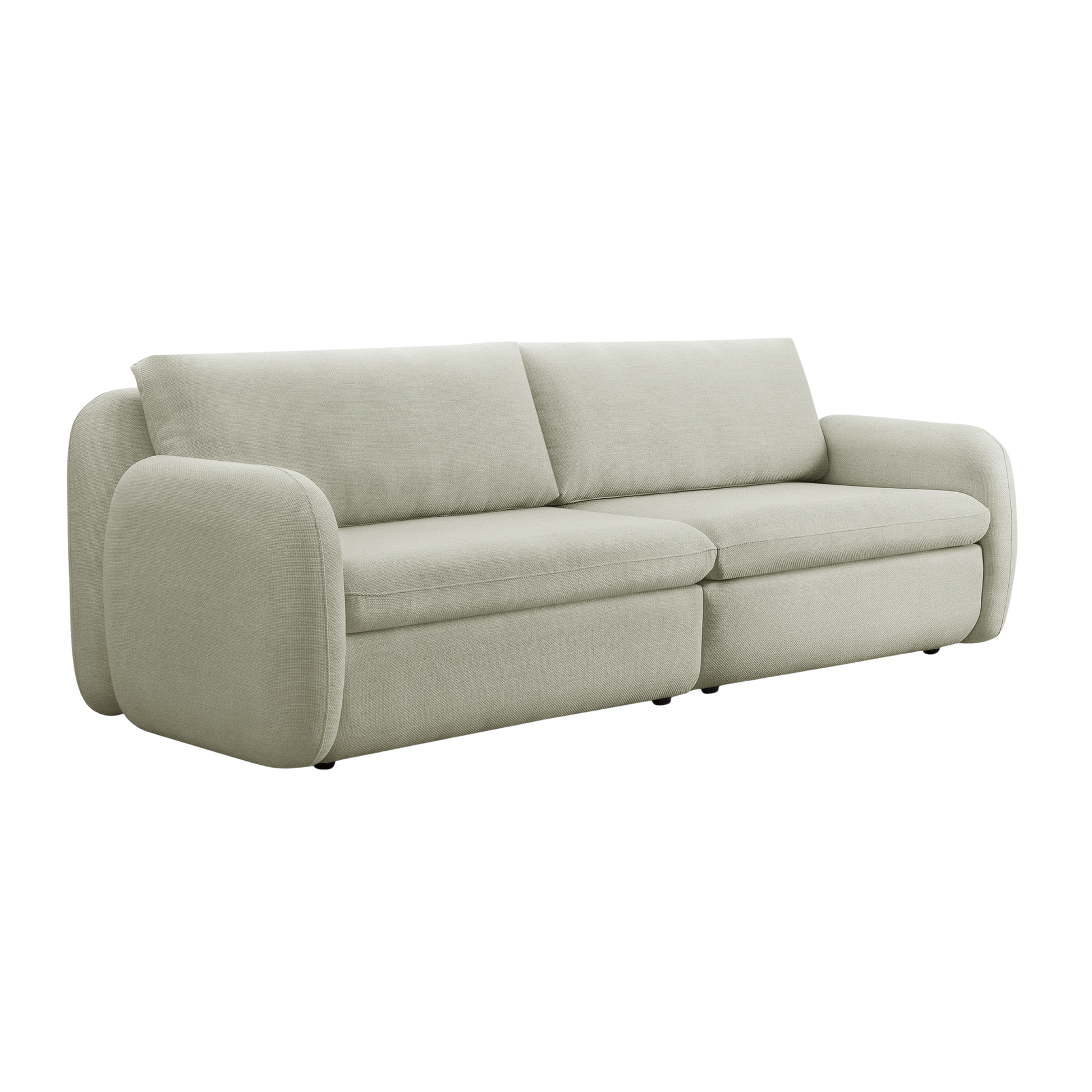 Sofá con silueta envolvente y líneas redondeadas que aportan calma visual a cualquier living.