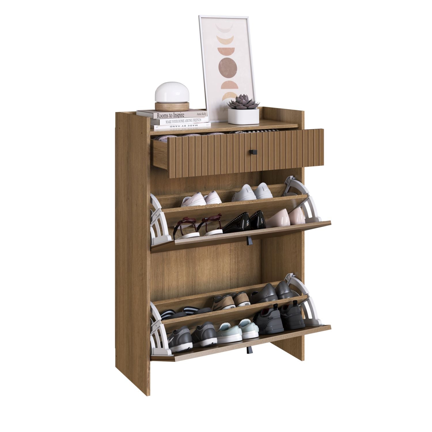 Este mueble multipropósito es ideal para cualquier habitación, ya sea un dormitorio, hall de entrada o un pasillo. Su diseño versátil y funcional lo hace perfecto para guardar zapatos y otros objetos, manteniendo la organización y el estilo en tu hogar.